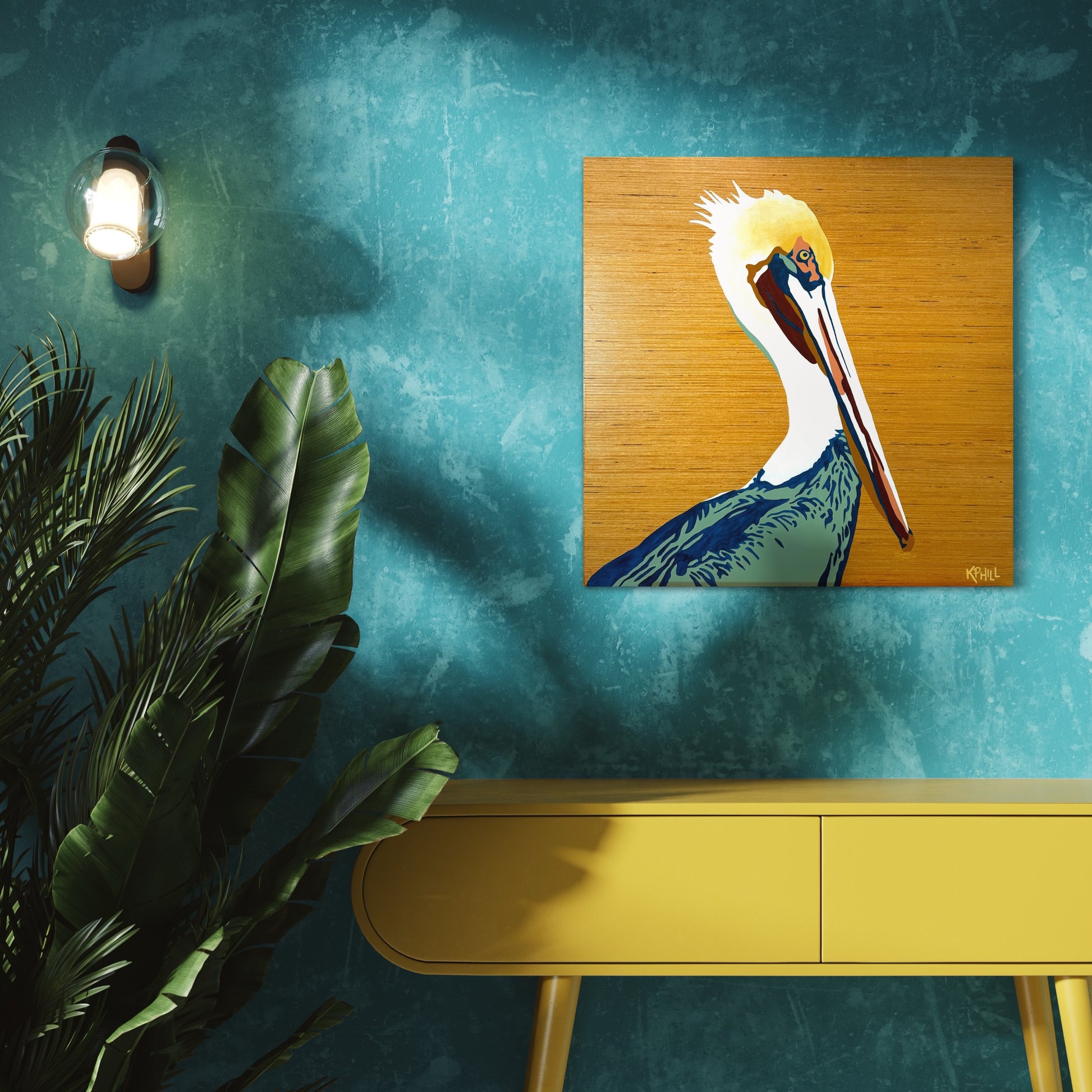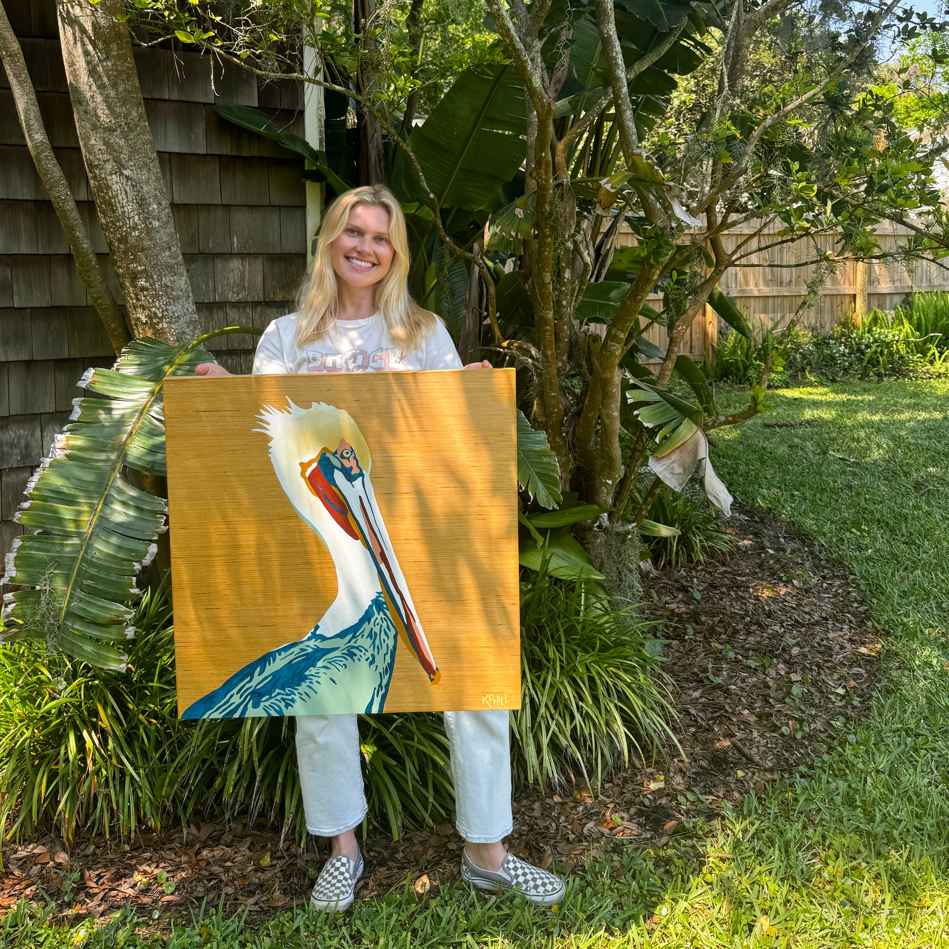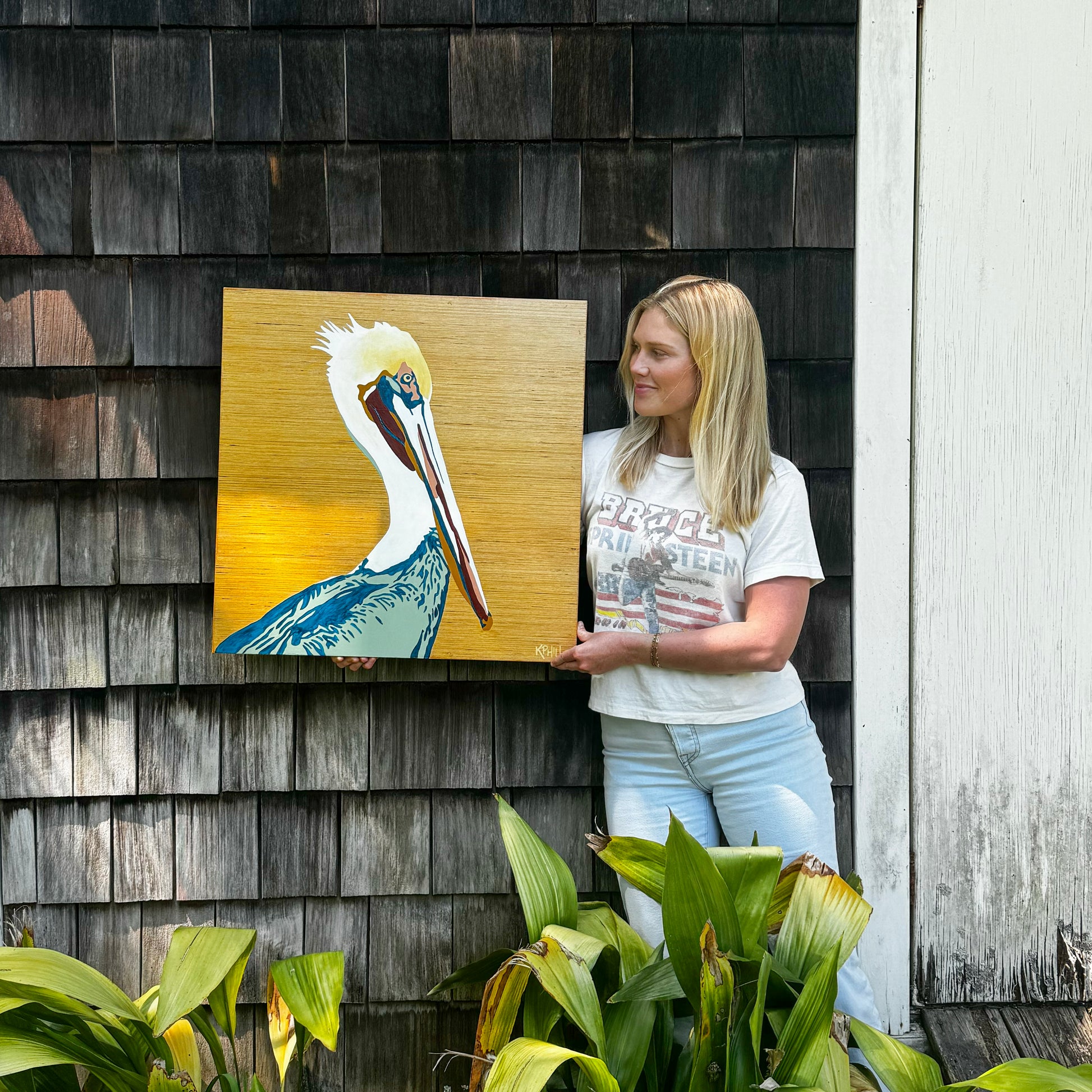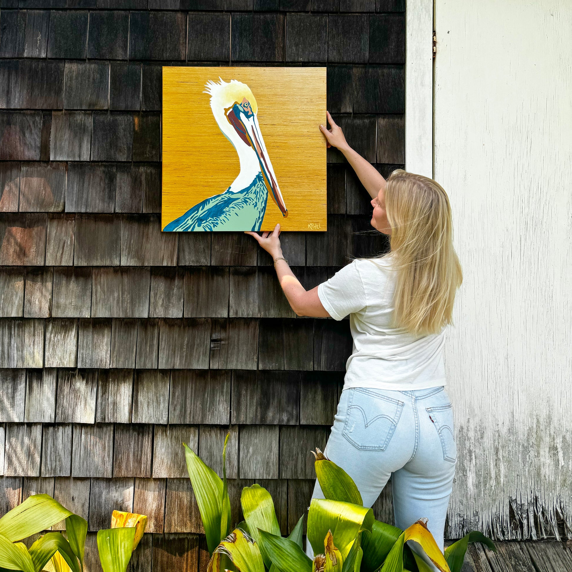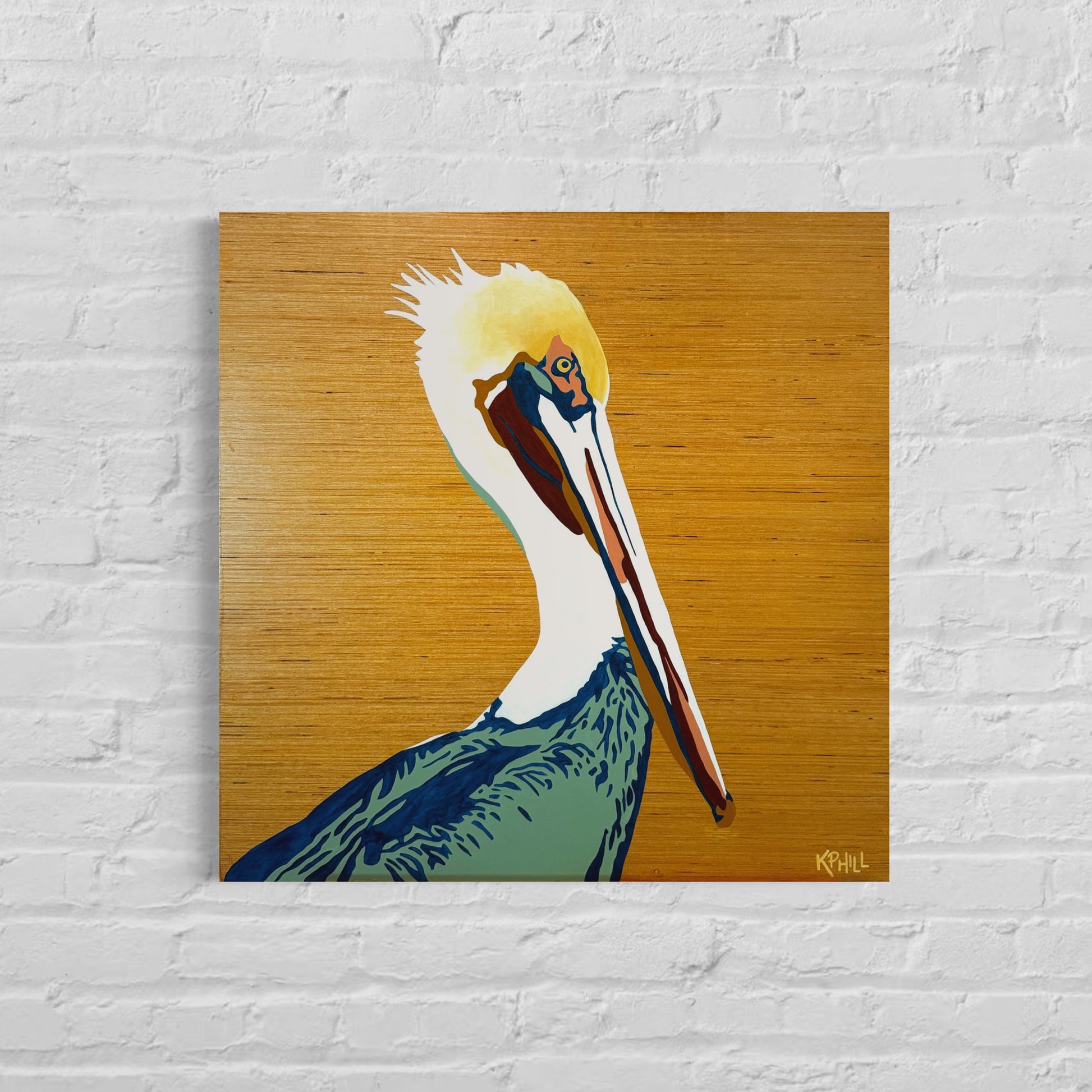 KPHILL, "Pelican," 2024, acrylic on poplar wood, 24" x 24" x 1"